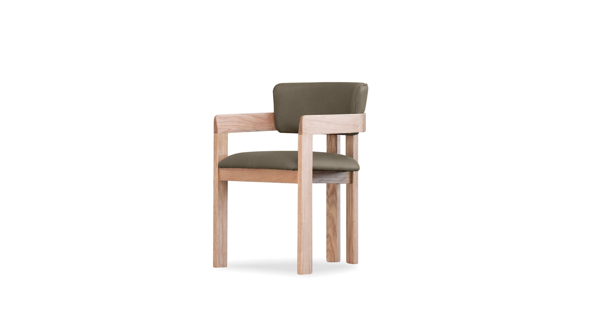 The DUCHESS dining armchair showcases a refined blend of comfort and craftsmanship, featuring a smooth light stone leather paired with a natural walnut frame for a warm, sophisticated look. For a brighter aesthetic, it?s also available in an olive leather complemented by a white oak frame. This versatile design suits both modern and classic interiors, making it a timeless addition to any dining space.