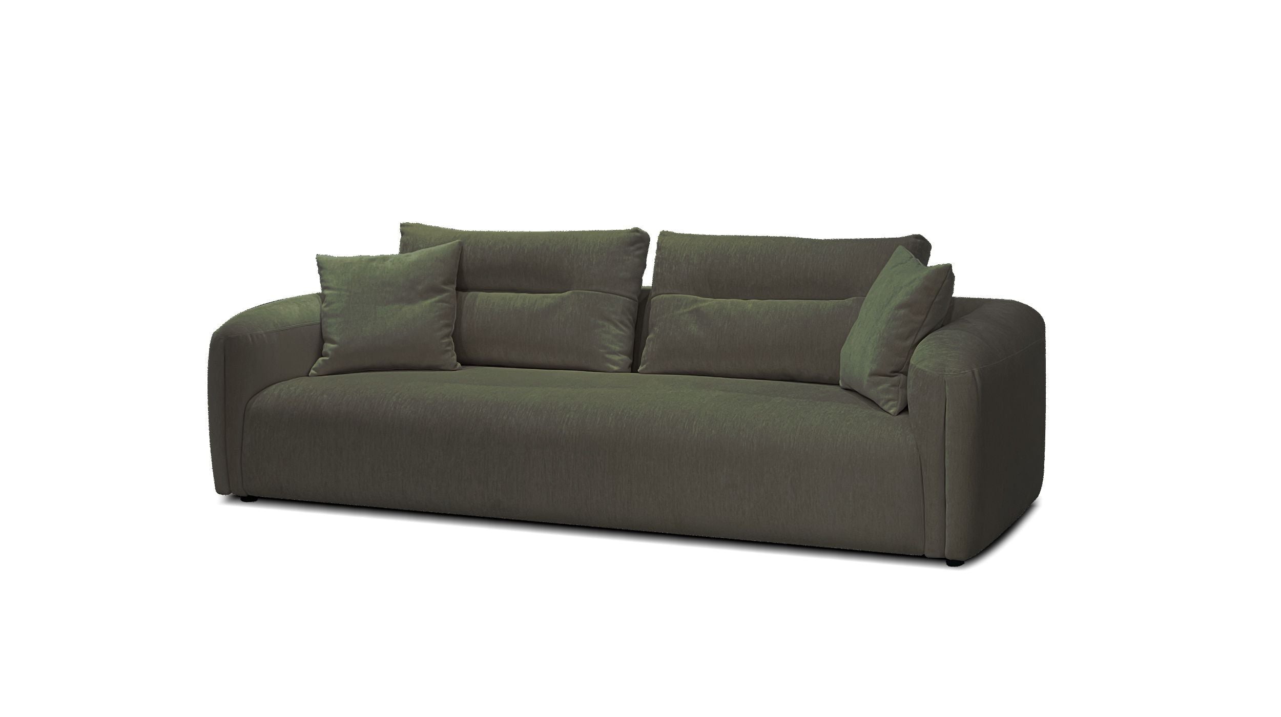 Introducing FILO, a chic 3-seater modern sofa, available in Thyme green or cream textured ultrasuede fabric. Designed for comfort and style, it features two generously sized back pillows ensuring plush support for relaxation. With its sleek profile and versatile color options, this sofa effortlessly elevates any contemporary living space, combining elegance with inviting comfort.