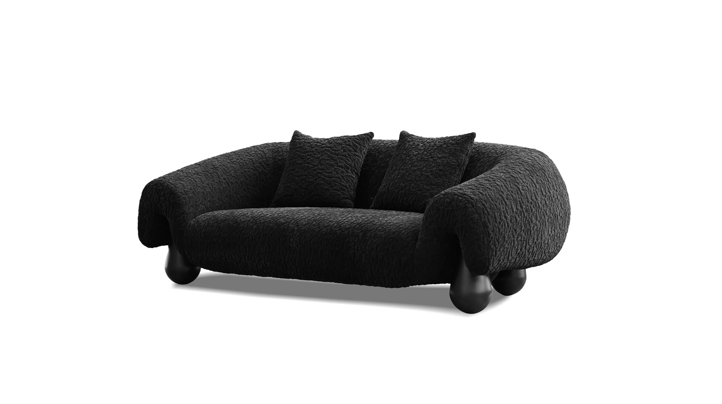 The FURO collection features three elegant pieces: a lounge chair, a 3-seater sofa, and a 4-seater sofa. Upholstered in luxurious black quilted velvet, it offers both comfort and style. The collection's distinctive leg detailing, inspired by water drops and the wabi-sabi aesthetic, adds a unique and serene touch to its sophisticated design.