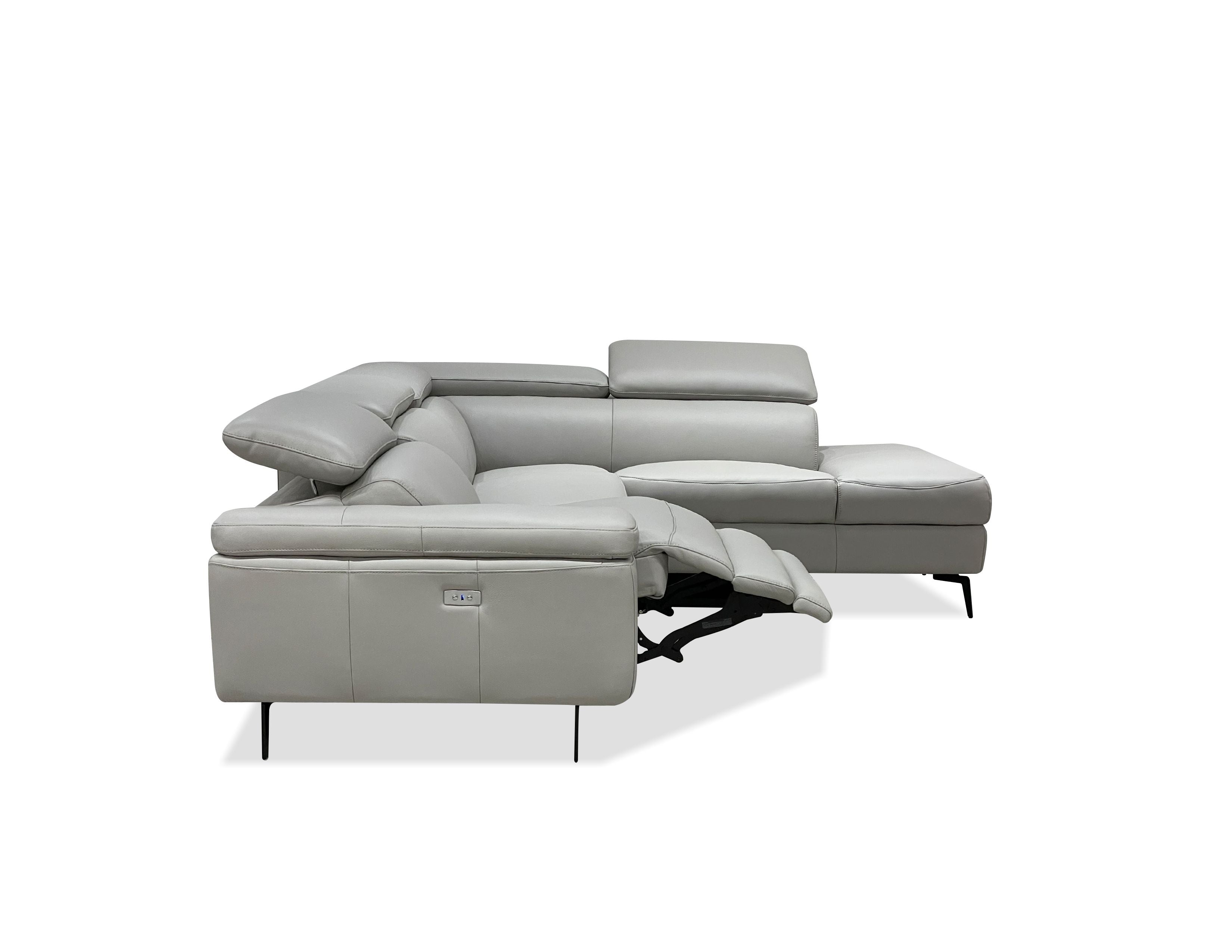 The Camello recliner sectional is everyone's favorite, allowing you to take a load off with it's many mechanical reclined positions. is made from buttery soft semi-aniline leather and is fully covered. No splits or leather matches here. The headrests are adjustable into six customizable positions and the modern designed legs are powder coated in a matte black finish.