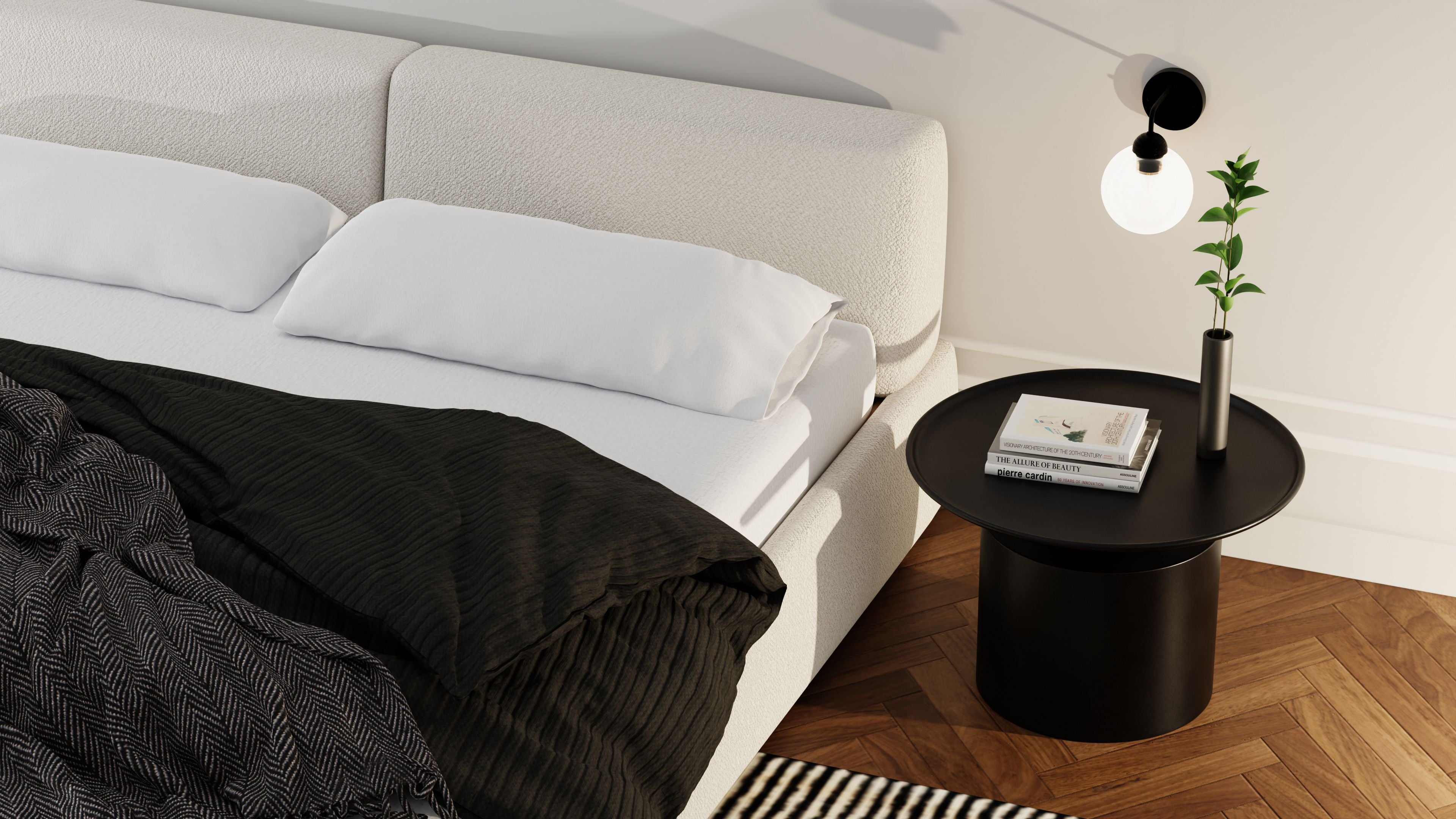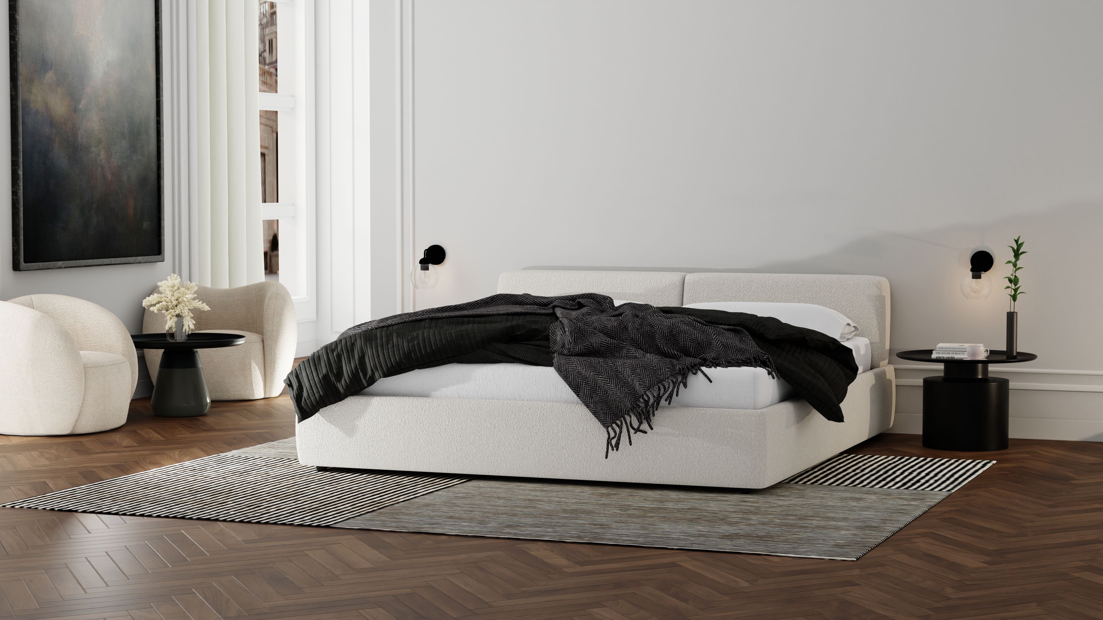 The CLOUD 9 bed features a low profile frame with a thick upholstered headboard, this bed features removable covers for easy cleaning - available in cream boucle.