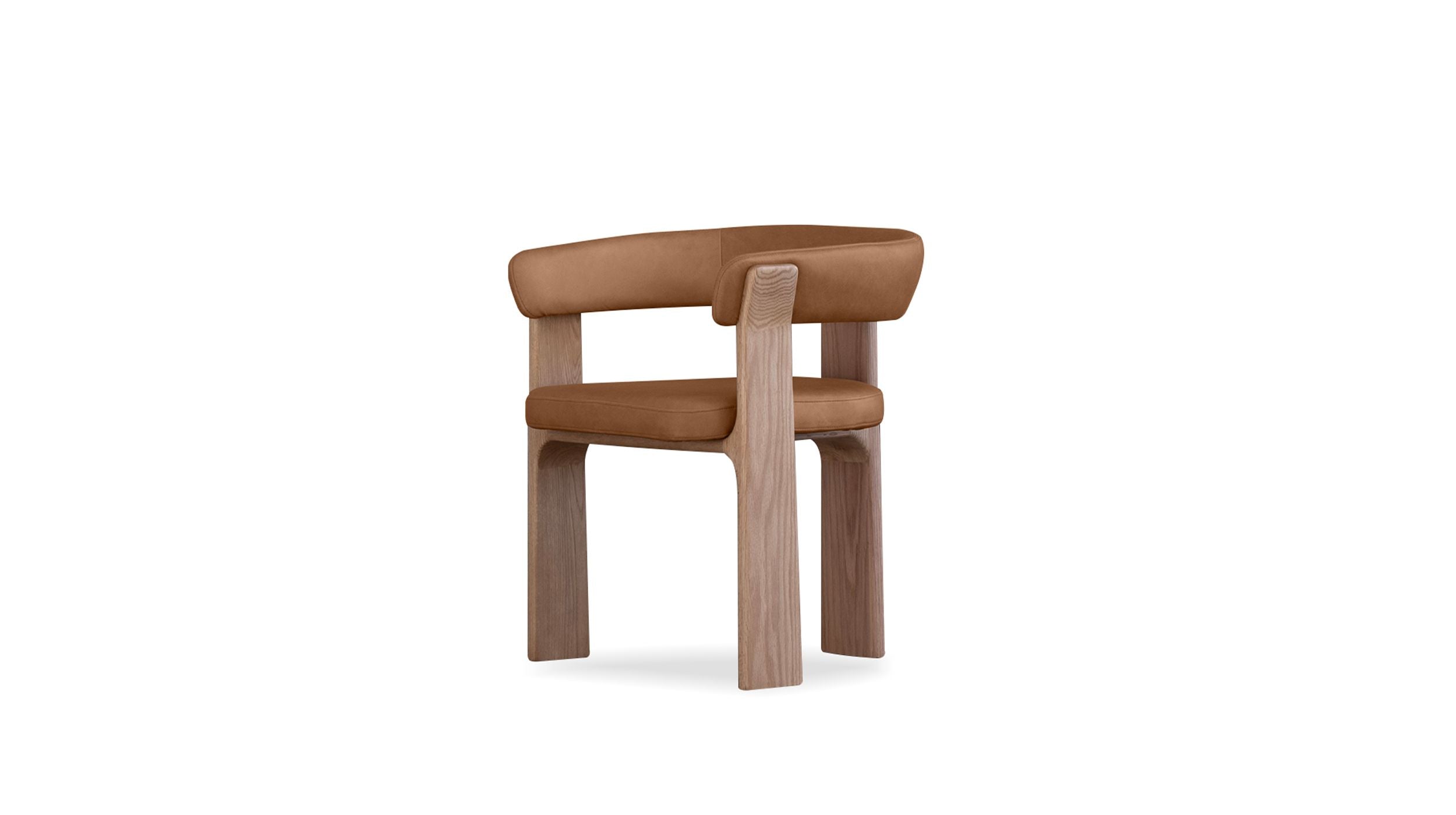 The DUKE dining armchair showcases a refined blend of comfort and craftsmanship, featuring smooth vintage mocca leather paired with a natural walnut frame for a warm, sophisticated look. For a brighter aesthetic, it?s also available in vintage tan leather complemented by a white oak frame. This versatile design suits both modern and classic interiors, making it a timeless addition to any dining space.