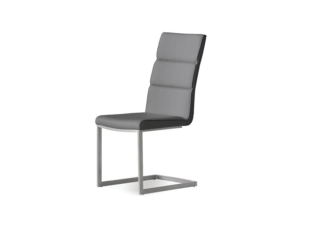 The DUOMO chair in grey or white is upholstered in a easily maintained leatherette with a baffle tufted back detail. It features a U-shape base finished in brushed stainless steel and has a bit of flex in the seat for extra comfort.