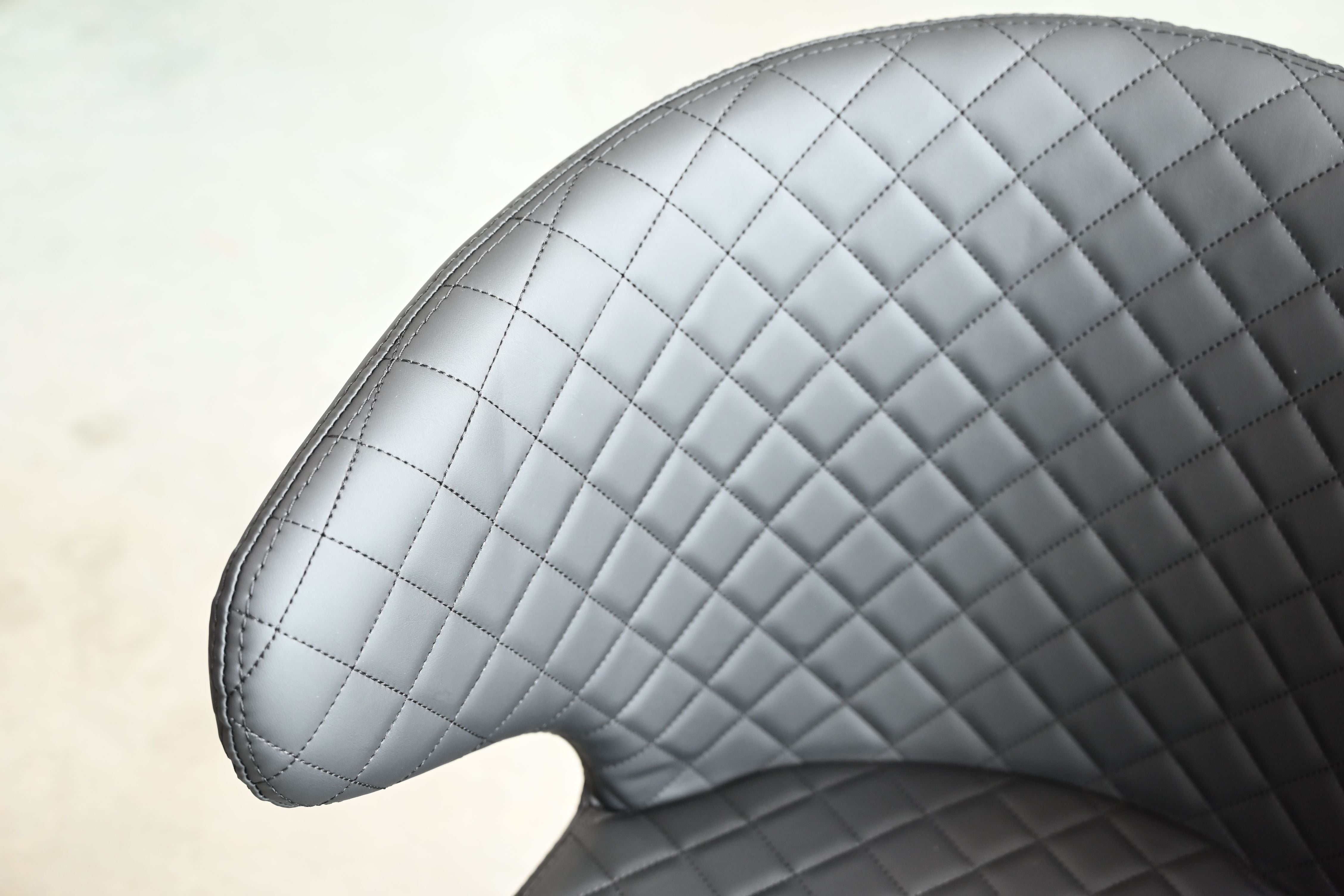 The HUG counter stool has a curved back that does exactly what it's named after, hugs you into comfort. This stool is upholstered in a buttery soft leatherette and available in either jet black or russet brown. Hug features a diamond tuft quilt pattern and a black powder coated uniweld steel base leg. Hug collection offers a matching dining chair option in both colorways.