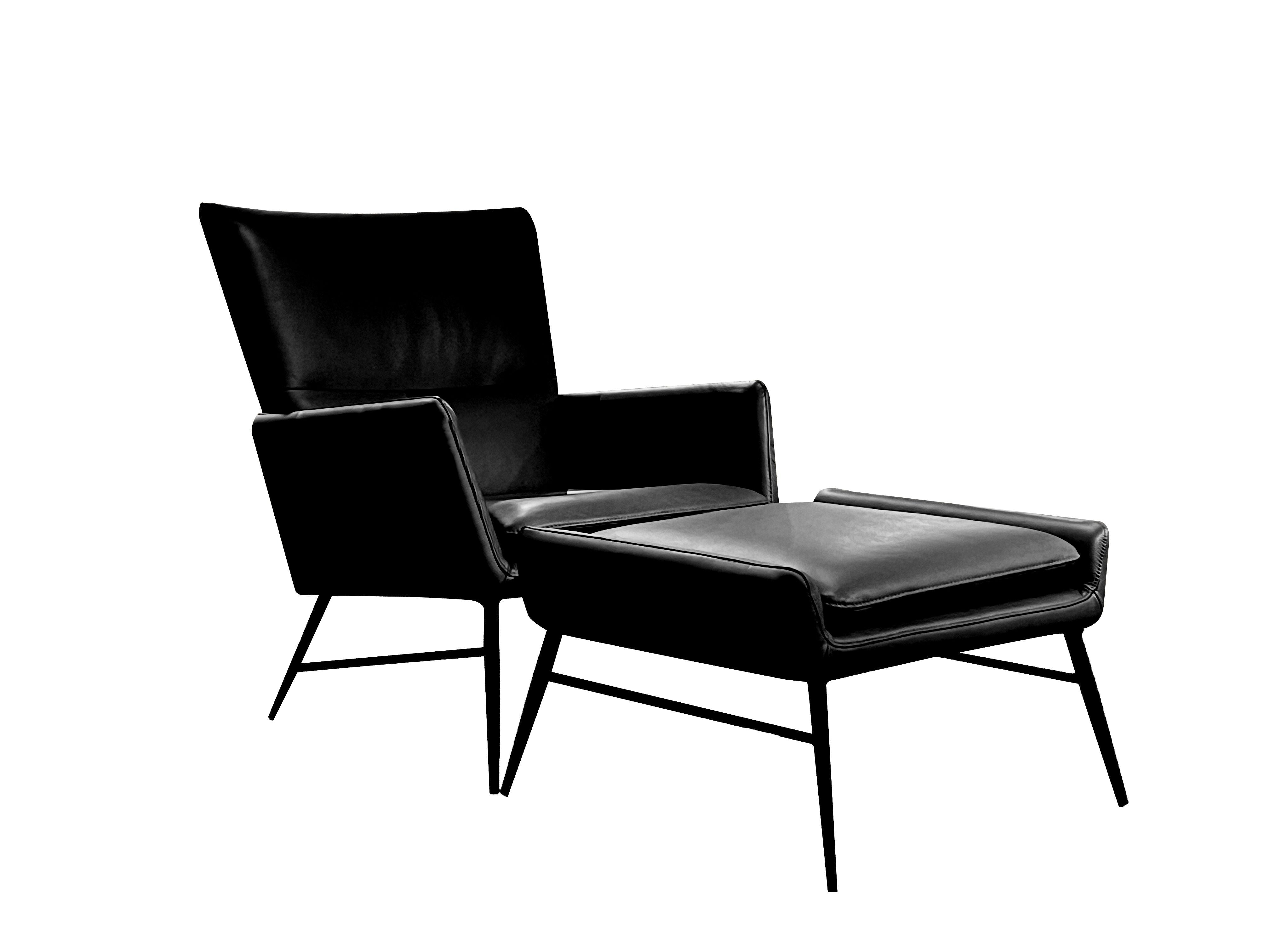 Morisson is a mid-century Danish design leather ottoman that blends form and function effortlessly. Its slim and sharply defined frame is topped with luxurious tan or black leather, exuding understated elegance. Powder-coated steel legs offer sturdy support while adding to its aesthetic appeal. This ottoman has a matching lounge chair option and is the epitome of mid-century modern design; perfect for any contemporary living space.