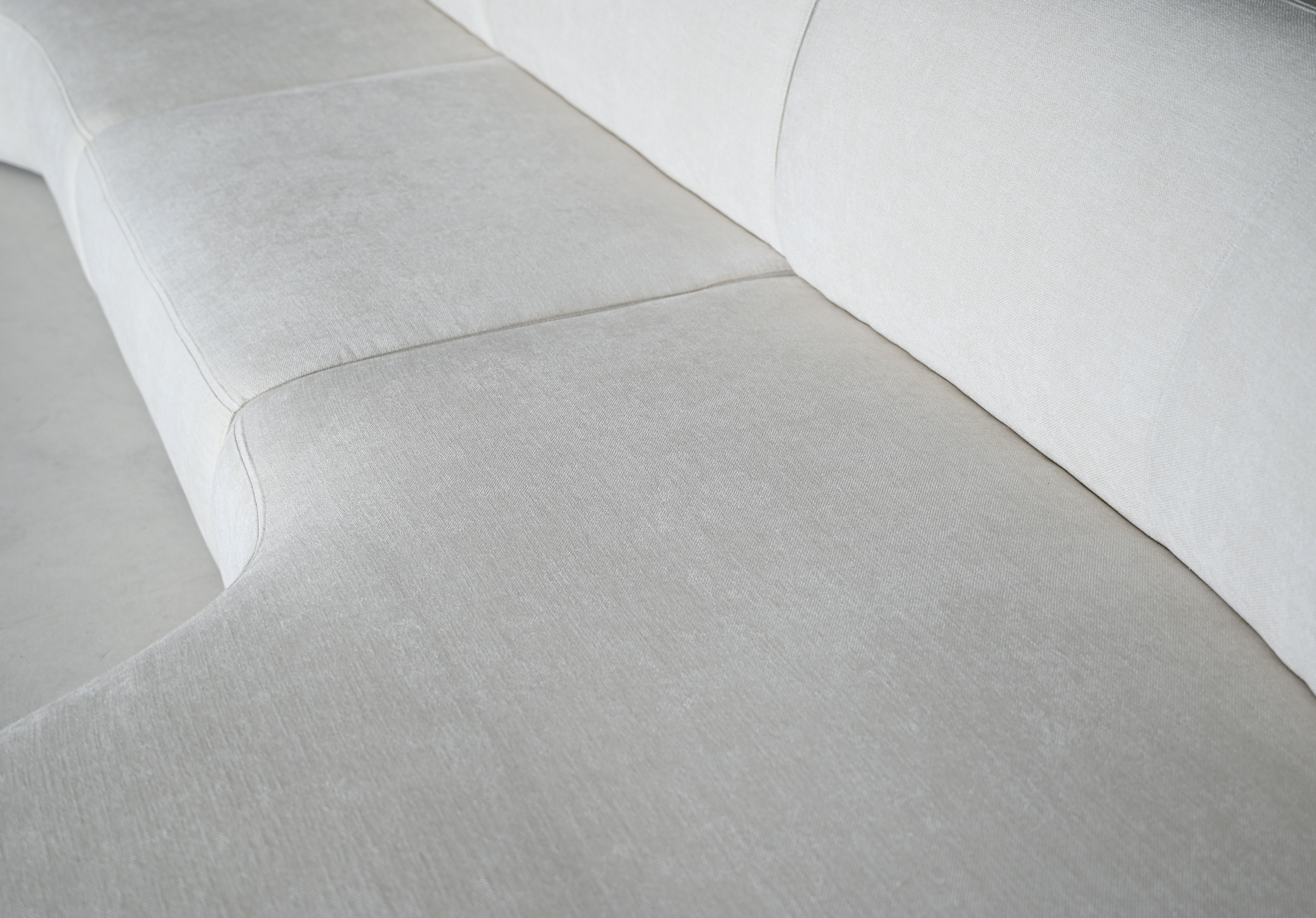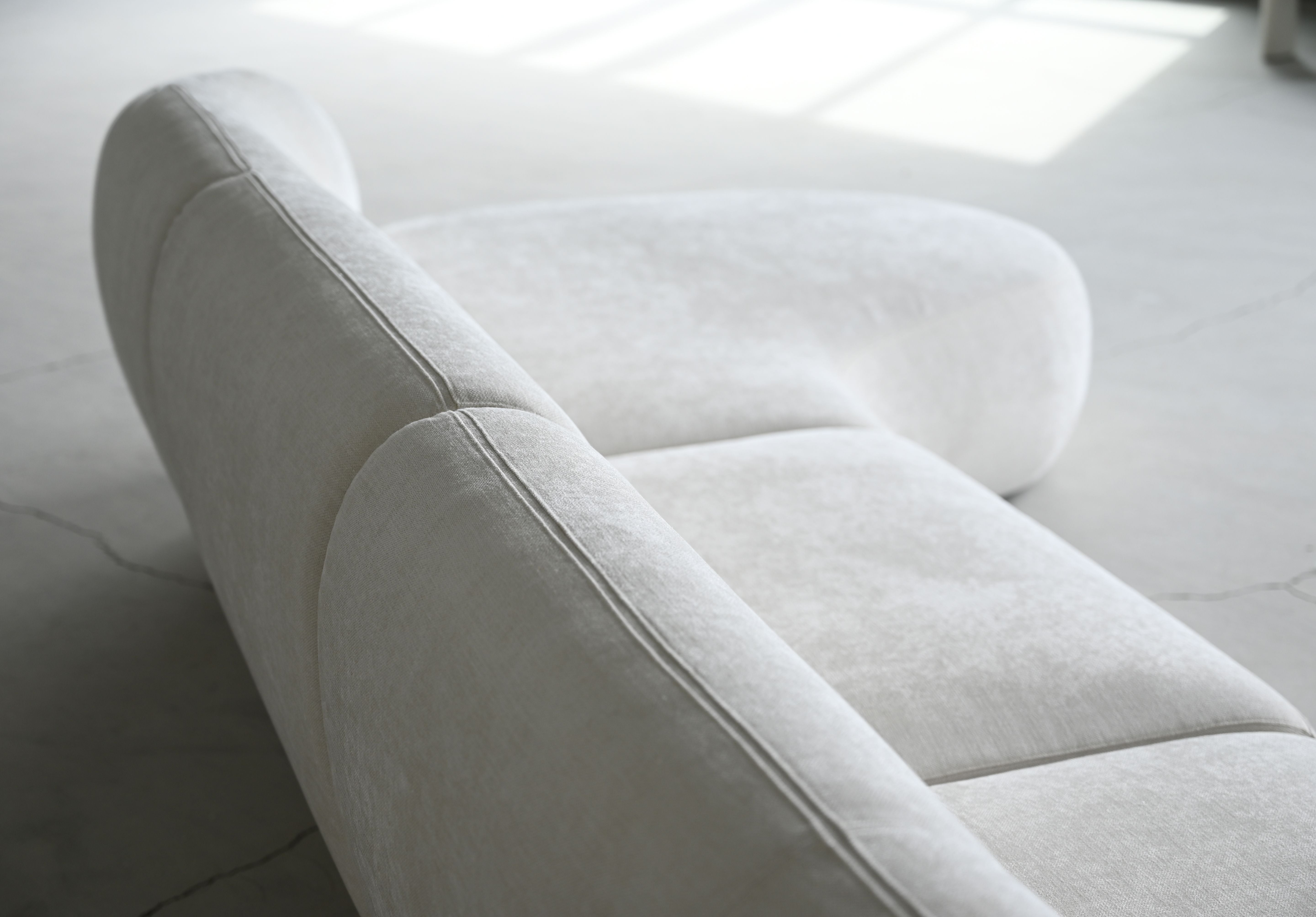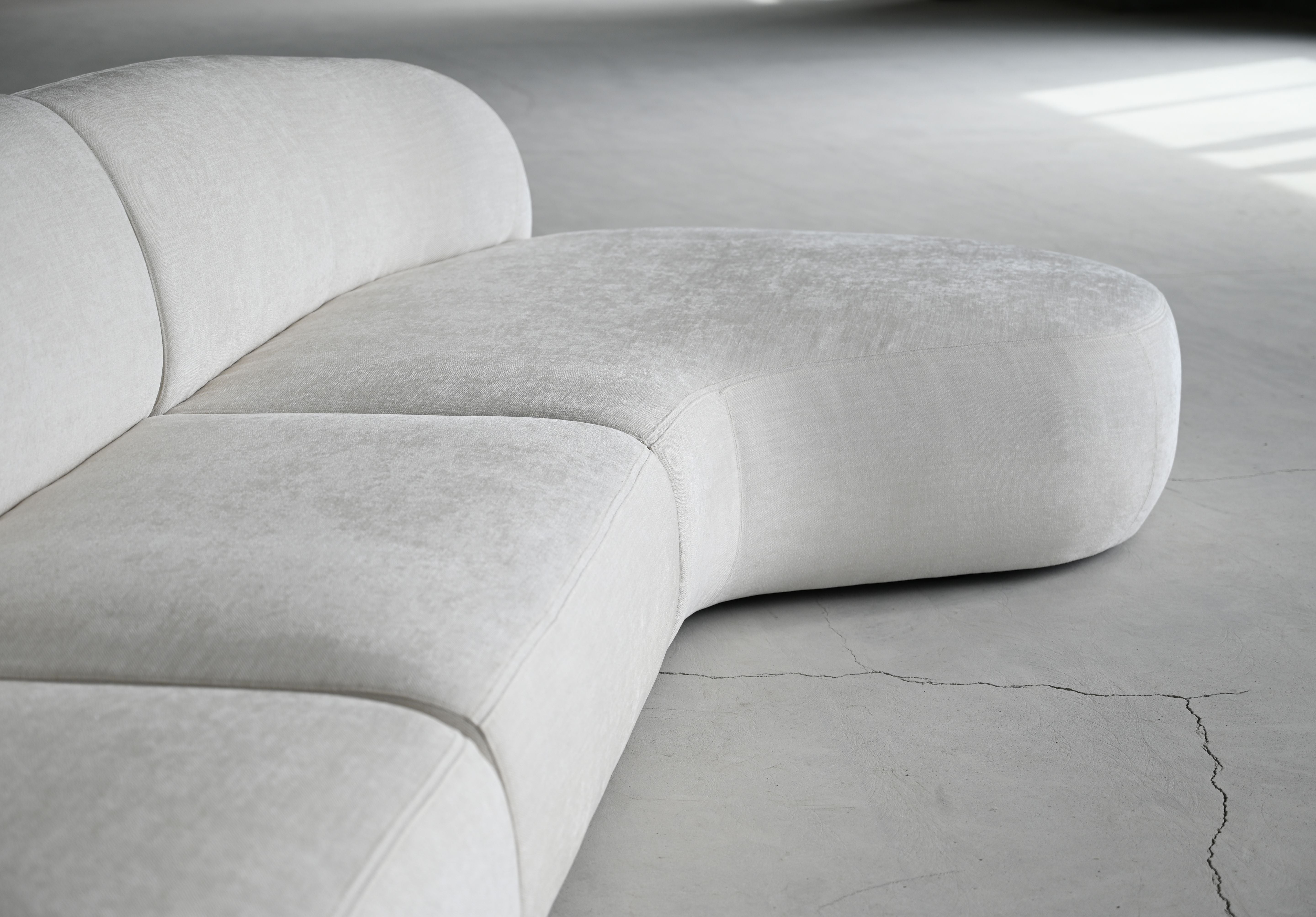 The Moritz sectional is wrapped in a soft alabaster fabric. This piece features a tight back upholstery in a feminine curved silhouette, creating an elevated look in your space. The Moritz is designed and built for comfort and beauty, also available in a licorice boucle color/fabric option. Designed by Dainelli Studio