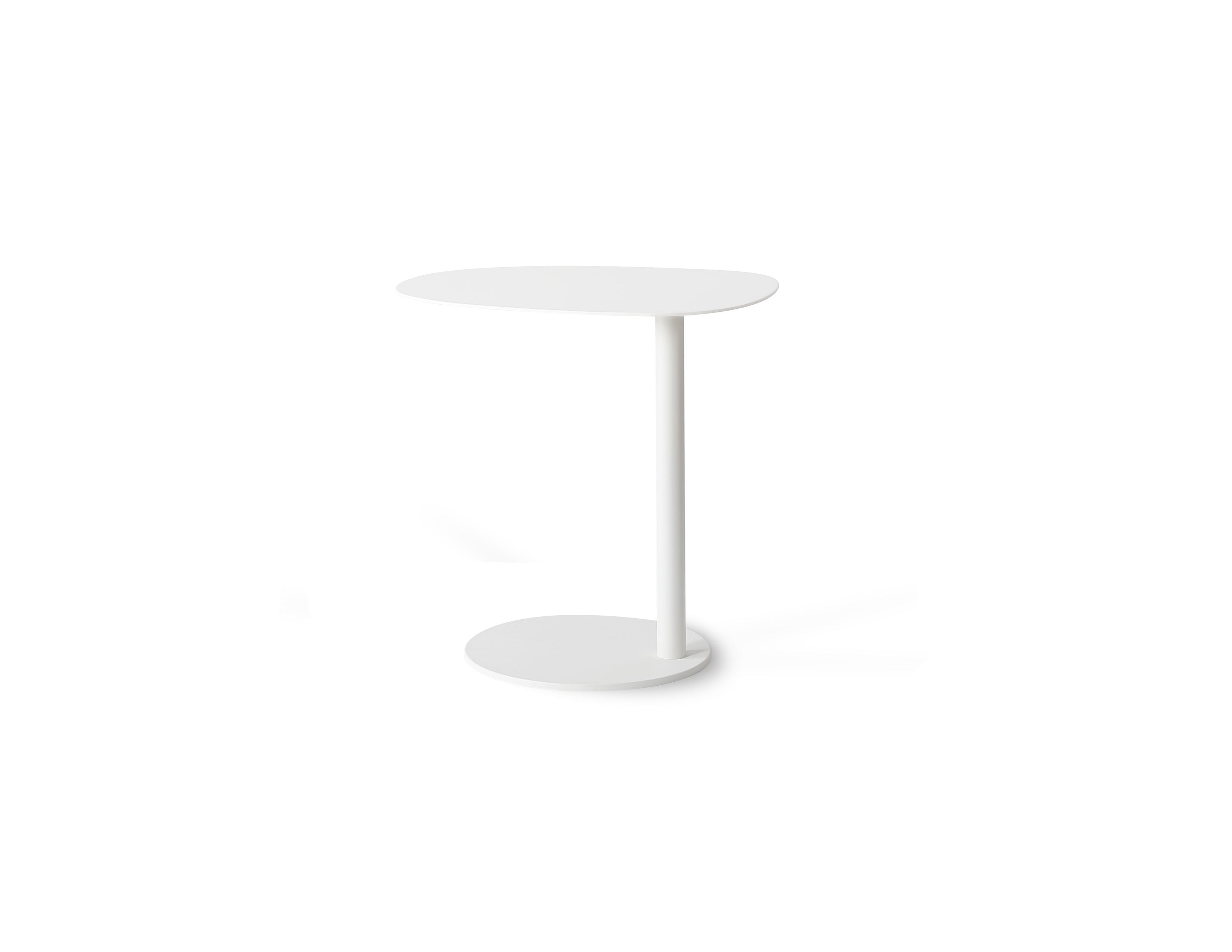 The Perch tables are made from heavy plate steel that has been powder coated in matte black or white. They make the perfect laptop tray at a sofa as it cantelevors over top of the seat. Pull it up between you and a friend and keep your popcorn and beverages close by or use as a stylish end table.