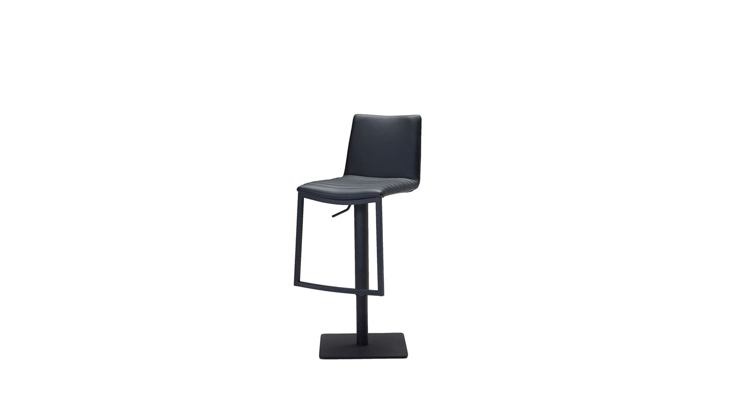 The RAVEN stool swivels on a sturdy steel post and is custom adjustable in height on a German rated TVAC piston mechanism. The upholstery is a breathable and easily cleaned leatherette. The seat construction is made from high quality foam to ensure comfort and longevity. The pedestal of this stool is PC in a modern matte black finish allowing it to coordinate with all kinds of kitchen finishes and stone counters.