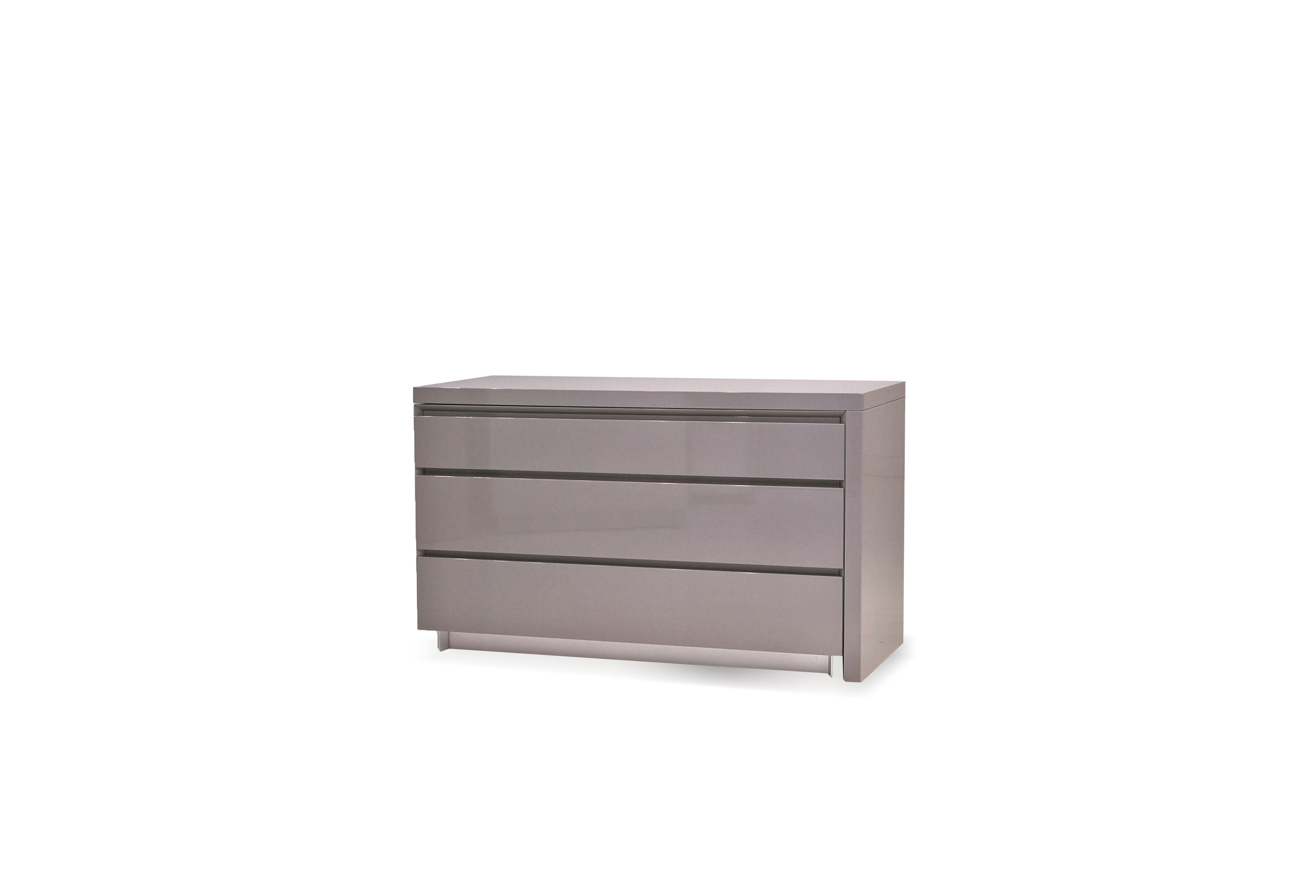 The SAVVY collection is the perfect choice of dressers and nightstands to go with any style of upholstered bed. Soft close drawers that keeps those sleeping asleep and tempered glass tops on the nightstands and chests. The extension dresser can be customized at any length to suit the space and the extensions can easily be reversed left or right with a smooth felt glide mechanism. A brushed steel look base finishes the design while the HG lacquer finish and construction surpasses all VOC requirements.