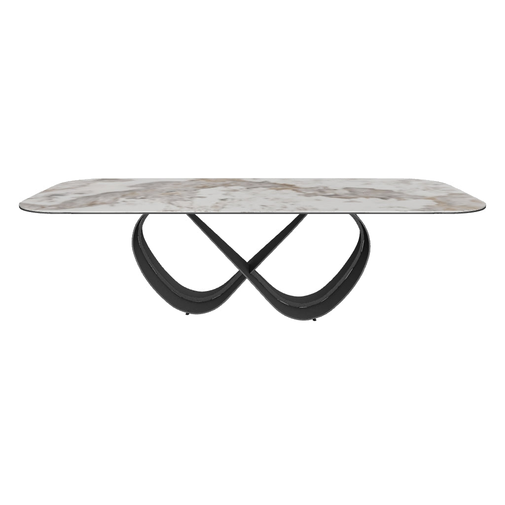 Elegance meets durability with the Wave table. Crafted with a stunning Magellano ceramic top, this table is not only visually striking but also incredibly resilient. The unique butterfly-designed base, made from solid steel, adds a touch of sophistication to any space.